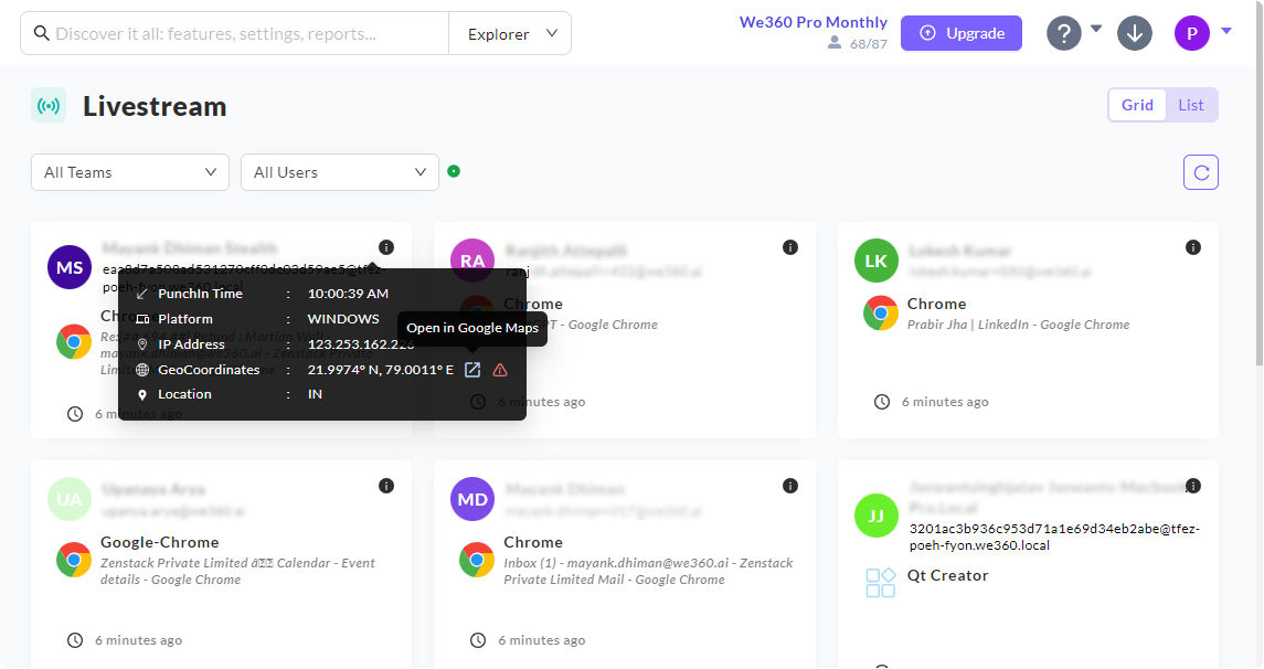 Discover more with our Livestream feature's latest upgrade. Now, clicking the "redirection icon" next to user "latitude and longitude" details reveals their location on Google Maps. This addition offers a valuable dimension to user interaction.
